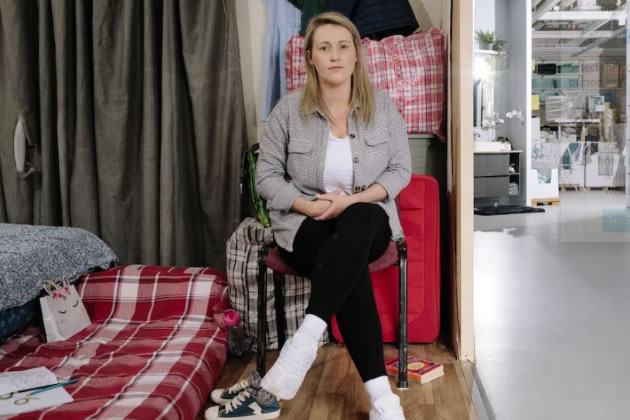 The roomset, one of four set up at IKEA stores around the country, has been created with the help of homelessness charity Shelter aiming to highlight the cramped, dangerous, and unfit space that an increasing number of people are forced to experience living in temporary accommodation.