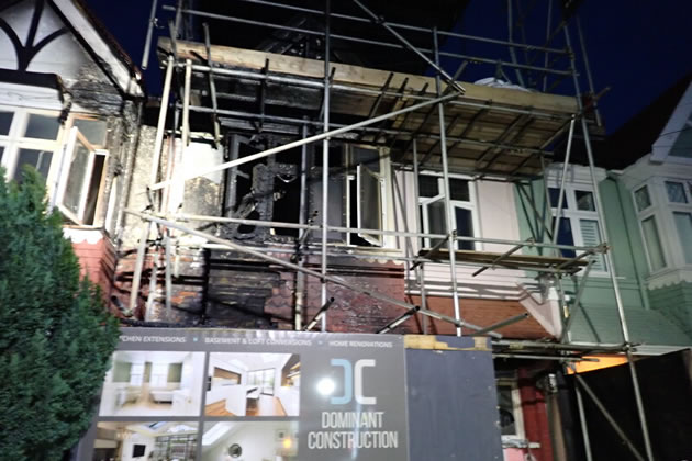 The fire broke out at a house undergoing renovation, with flames destroying half of the ground floor and half of the first floor. A neighbouring property also sustained damage, with part of its first floor and a section of the roof affected.